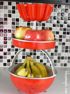 Life on Maple made a fun fruit stand. I love that she used three different types of pans/bowls/colanders for it.