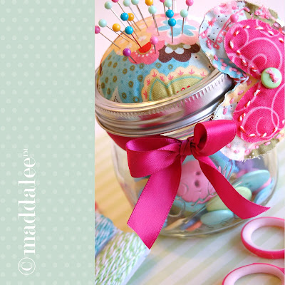 These little mason jar pin cushions from Maddalee would be the cutest little gifts for friends. Just fill them with some thread, needles, and buttons and you have yourself a darling little sewing kit.