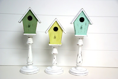 These handmade birdhouses on pedestals made by The Speckled Dog are just darling.