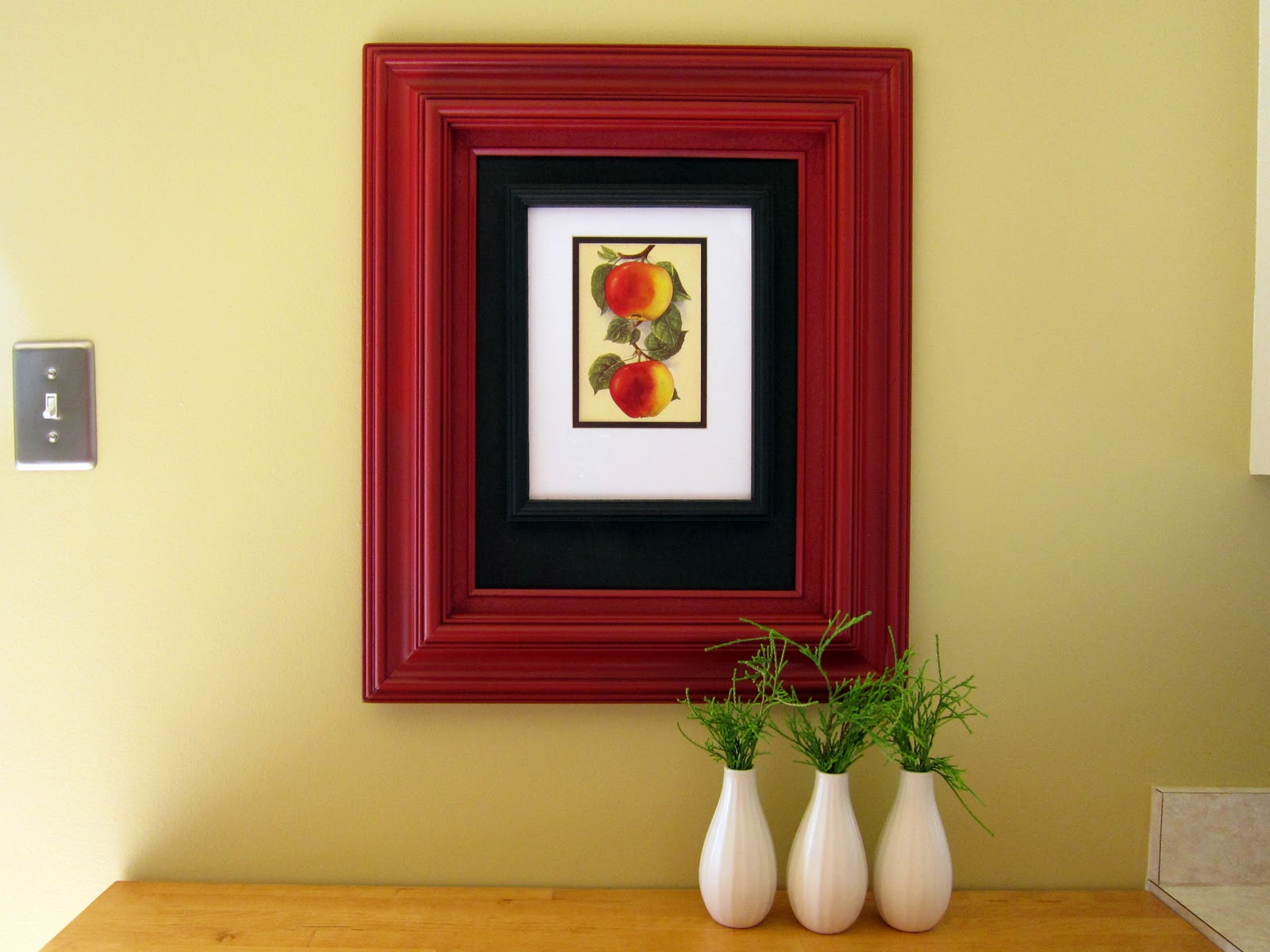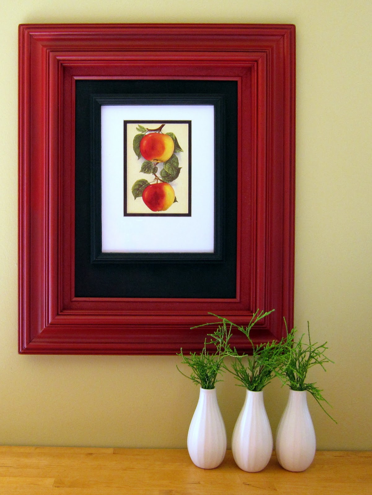 I love this apple print with the red frame! (It is actually a greeting card I just framed in a mat.)