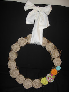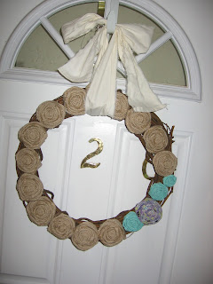 This is fun and easy basic wreath with burlap rosettes. The fun is switching out the small space with different colored rosettes whenever you want! Read more about it here.