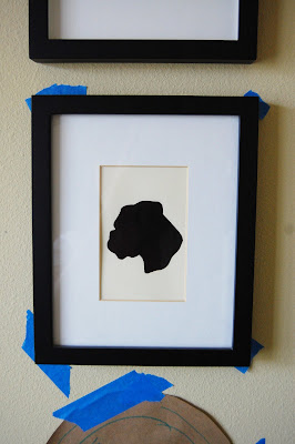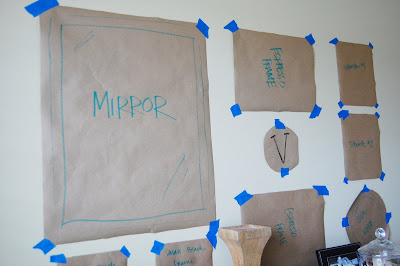 From there, I played around with placement of those things on the wall using painter’s tape, and made sure to label each piece so I could further visualize what was going where.