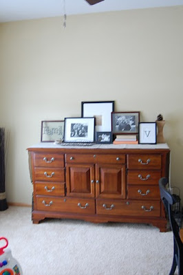 Love the frame wall!! Very cool!! And that dresser is amazing!