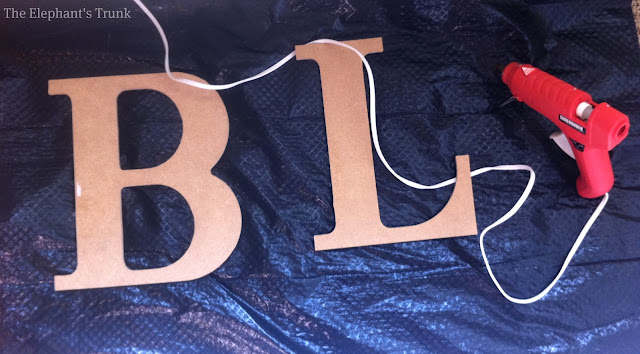 I first saw this idea pinned via this site on Pinterest and I knew that it was something that I had to do. This project was very easy and took a small amount of time to complete. I started off with a few pieces of cardboard letters from Hobby Lobby a B for Brendan (my boyfriend) and a L for Lauren (me of course). I then fired up my glue gun and was ready to go.