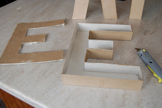 Queen of the Crazies took basic cardboard letters and turned them into her very own vintage sign! So awesome.